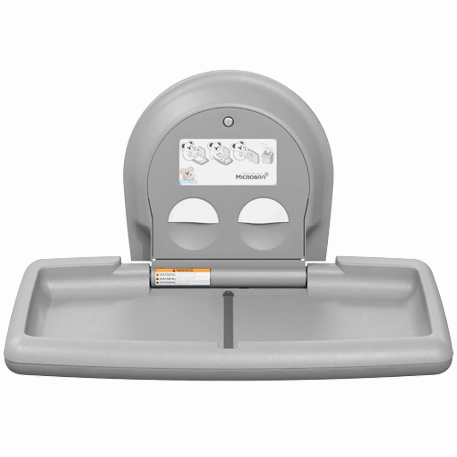 Die horizontale Aufputz-Wickelstation ist aus Polypropylen gefertigt und verfügt über ein stabiles Stahlgehäuse für höchste Stabilität. Zu den durchdachten Annehmlichkeiten gehören der Microban®-Produktschutz, ein neu gestalteter Beutelspender und das Koala-Markenzeichen, das den Familien Komfort und das Versprechen einer durchdachten Unterbringung vermittelt.